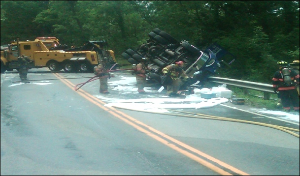 Newbury Fire Department, along with many other Geauga, Cuyahoga, Lake and Portage County fire departments, as well as the Geauga County Hazmat Team and EMA responded to an overturned gasoline tank truck (DOT 406) on Ravenna Road (SR 44) just north of Music Street at approx. 1330 hrs.